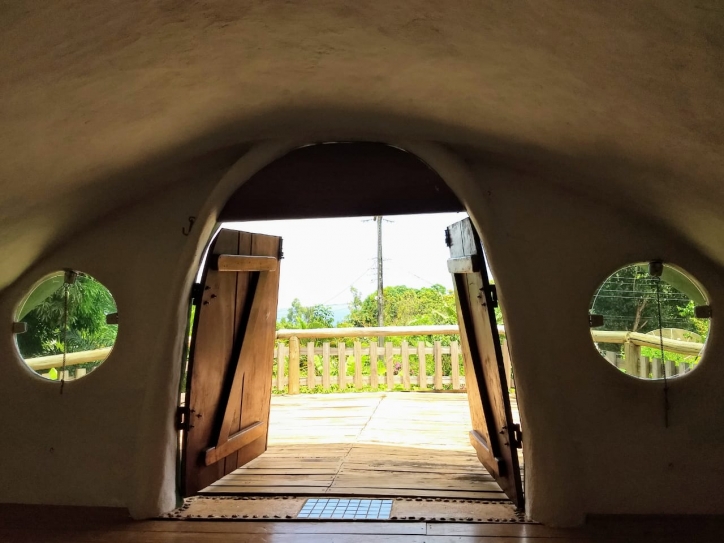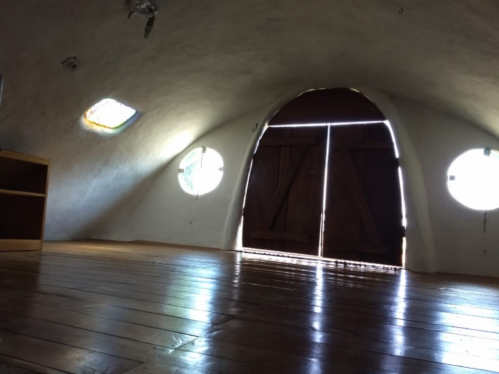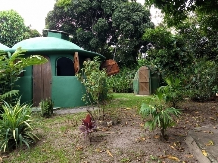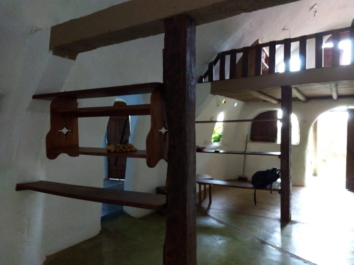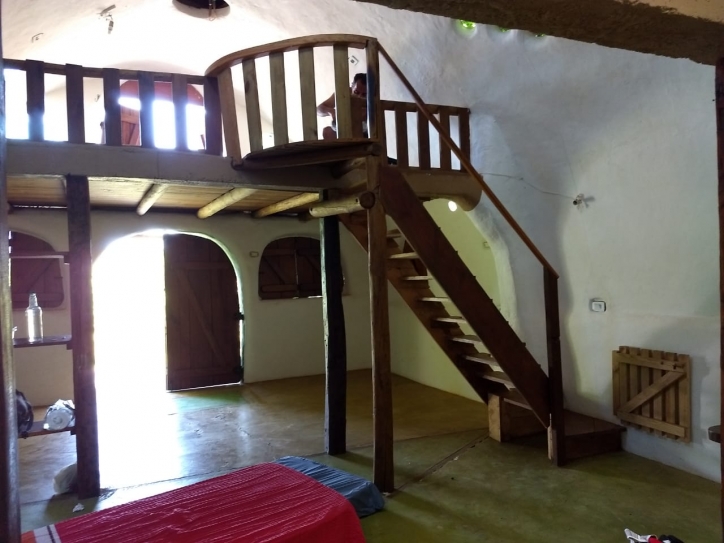 Descrições: Casa aconchegante com construção alternativa, contendo um vão central de 9mX6m que comporta 3 ambientes distintos.