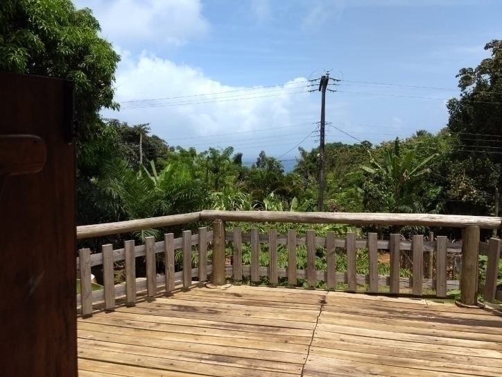Possui um banheiro acoplado, um quarto lateral, mezanino, varandas (sendo uma com vista para o mar), jardim com árvores frutíferas, sauna, fogão à lenha e uma construção de madeira para inúmeras finalidades.